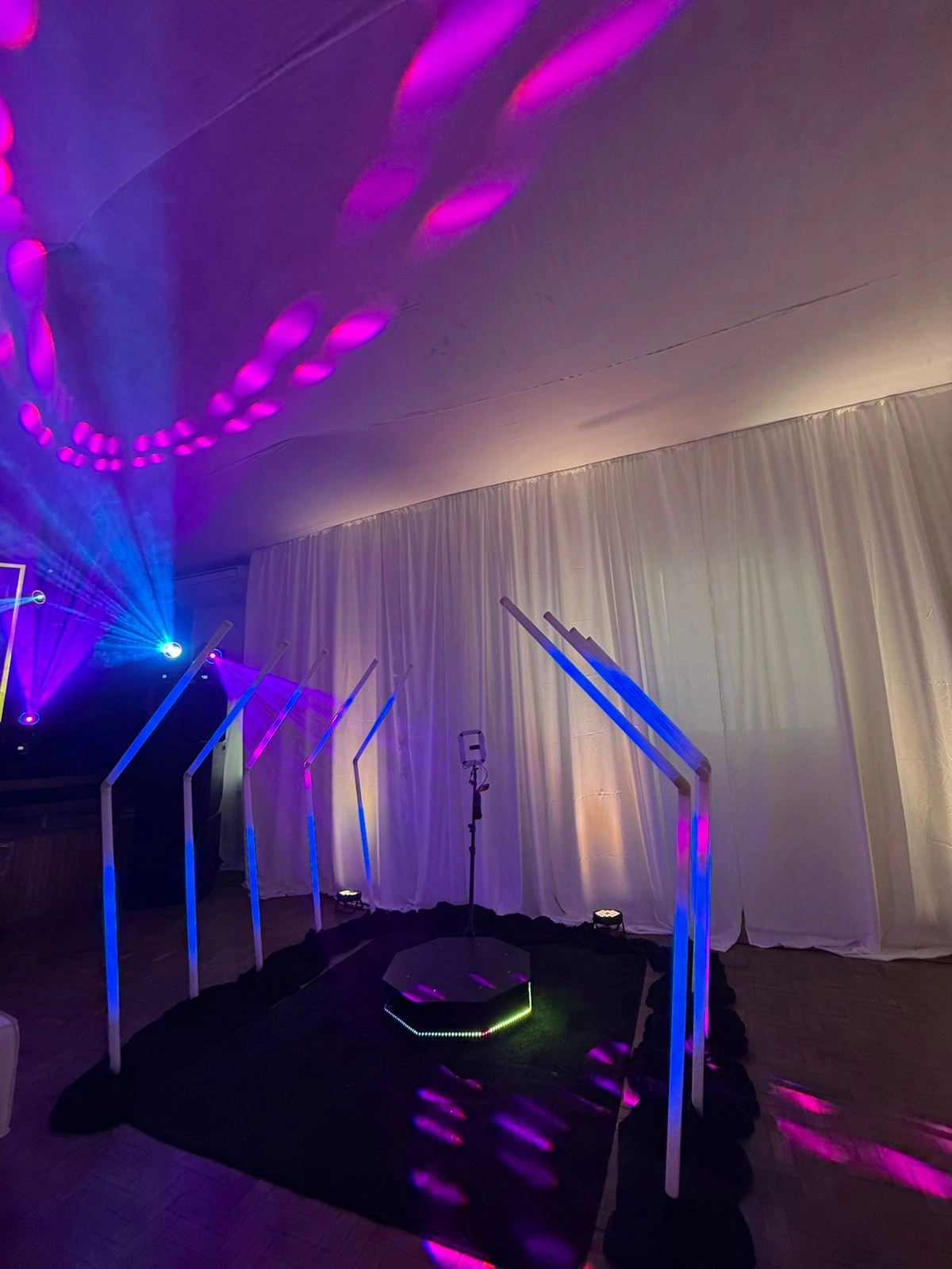 Oferece locação de plataforma 360º, túnel de LED, cabines, espelhos, totens, robô de LED, fotógrafo e Instagram com fotos impressas.