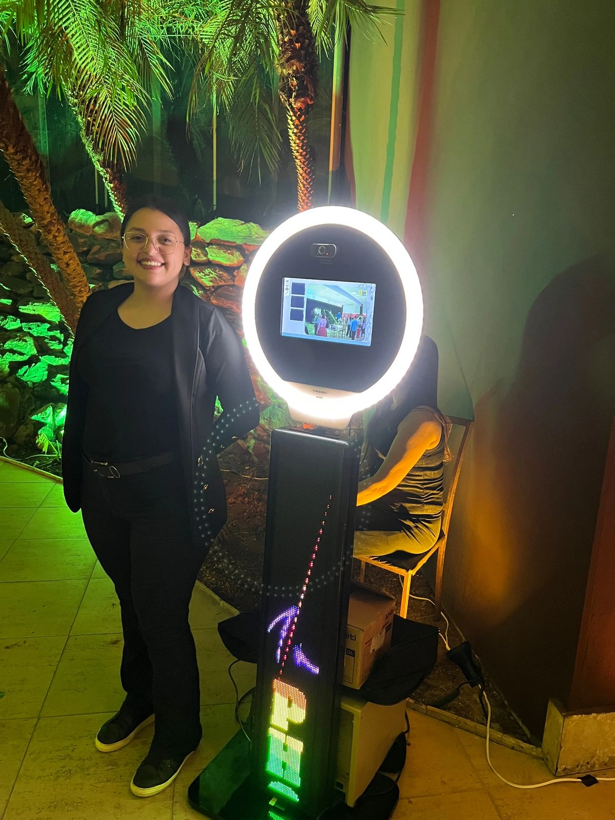 Com o totem de fotos, os próprios convidados podem registrar os momentos especiais da festa, garantindo uma cobertura completa e descontraída do evento.
