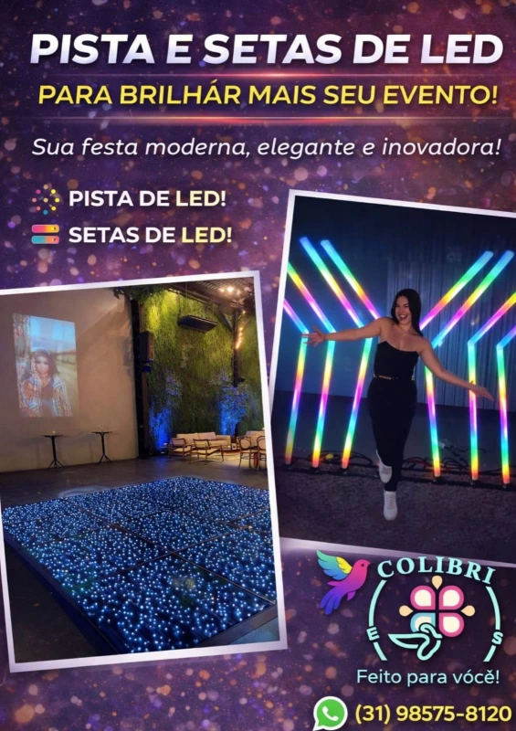 As data-link="setas-led, setas de led" são elementos visuais utilizados em eventos para orientar convidados e destacar áreas específicas do ambiente.